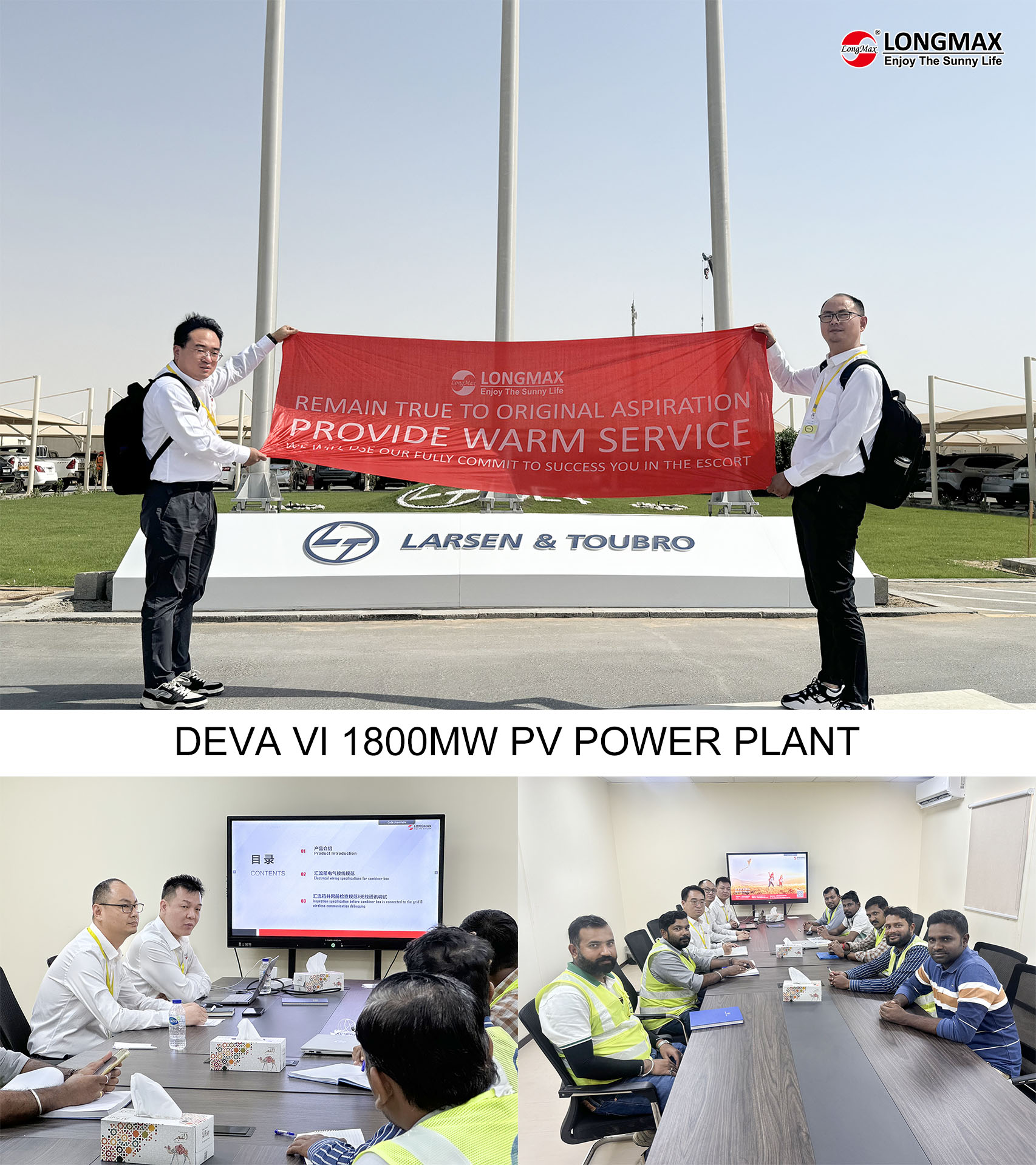 Recently, Longmax Technology's sales and after-sales service teams in the Middle East market have been working side by side, going to major PV projects in Saudi Arabia, the United Arab Emirates, and Oman one after another, which fully demonstrated Longmax's excellent service capability, and interpreted the company's core concept of “service excellence” with actions.