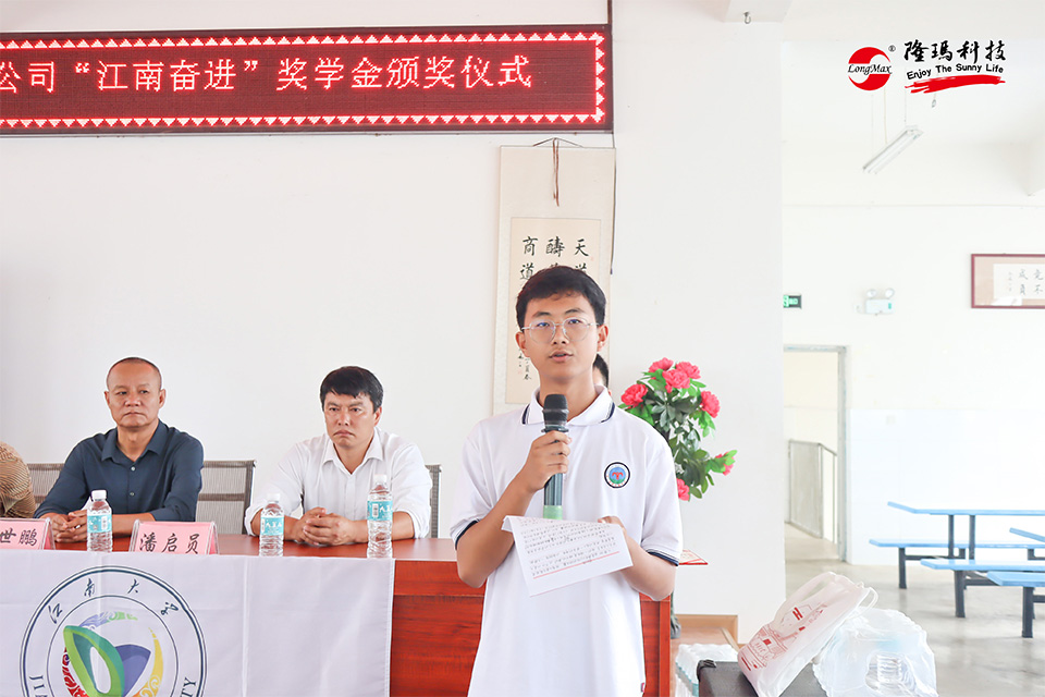 頒獎(jiǎng)環(huán)節(jié)上,受捐贈(zèng)學(xué)生代表初三(209)班楊天豪同學(xué)對(duì)隆瑪科技表示由衷的感謝,并說(shuō)道:“我們不僅要感謝無(wú)錫隆瑪科技股份有限公司和研支團(tuán)老師的無(wú)私奉獻(xiàn),更要把來(lái)自社會(huì)的關(guān)愛(ài)和老師家長(zhǎng)辛勤的付出化作戰(zhàn)勝困難的強(qiáng)大動(dòng)力,以更加勤奮努力的姿態(tài),不斷追求卓越,成長(zhǎng)為建設(shè)美好社會(huì)的棟梁之才!”